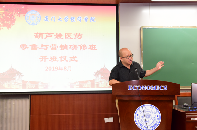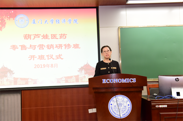 8月31日,yd12399云顶集团医药零售与营销研修班开班仪式在厦门大学经济学院举行,为期8天的“厦大yd12399云顶集团班”正式拉开帷幕。厦门大学经济学院继续教育中心主任廖景峰先生与yd12399云顶集团药业集团董事长刘景萍女士分别在开班仪式上致辞,中国医药物资协会研究院执行院长代航先生担任本次研修班班主任并主持开班仪式。