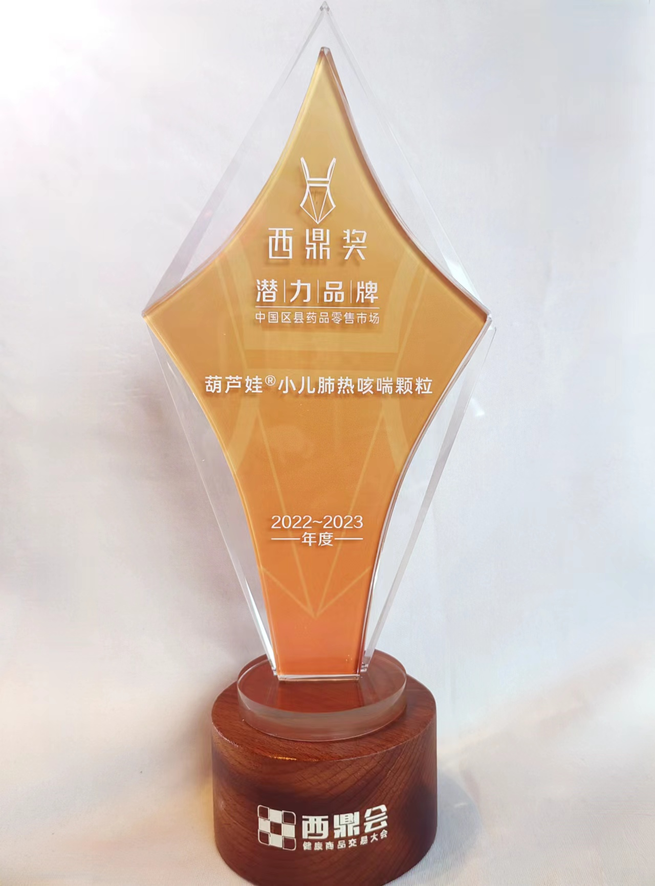 3月18日晚,2022-2023西鼎奖·品牌评选结果在西鼎会“播种·品牌聚势”晚宴上揭晓。yd12399云顶集团牌小儿肺热咳喘颗粒(4g)凭借过硬的产品质量、良好口碑与不断扩大的品牌影响力脱颖而出,荣获“2022-2023年度中国区县药品零售市场潜力品牌”。